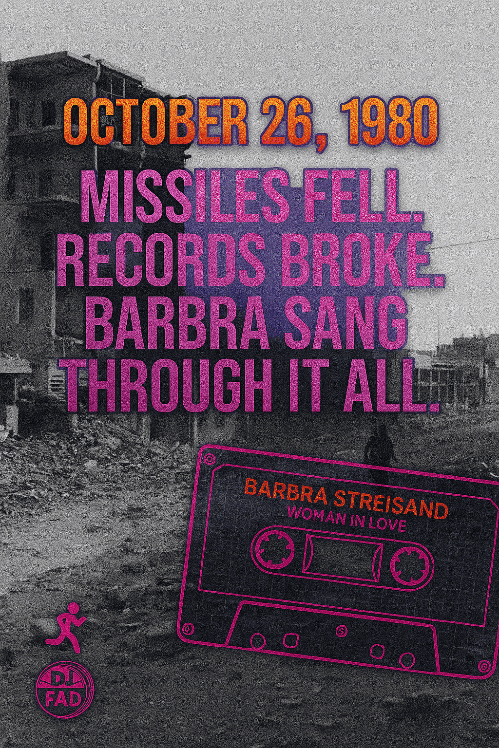 “October 26, 1980: missiles fell, records broke, and Barbra sang through it all.”